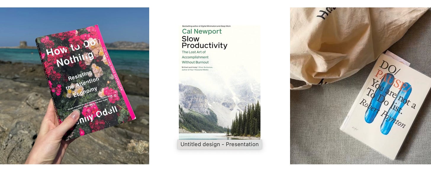 But starting that conversation made me nervous. I didn’t want to feed into the hustle culture machine—the 5 a.m. CEO routines (you’ll never see me up that early unless I’m catching a plane), toxic productivity, or the relentless glorification of being busy. Productivity has been hijacked. It’s been reduced to doing more, faster, squeezing every minute out of your day for tasks that are “productive” in a capitalist sense: making money or setting yourself up to make more.